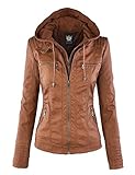 Womens Faux Leather Zip Up Moto Biker Jacket with Stitching Detail