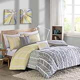 Intelligent Design Adel Comforter Set Twin/Twin XL Size - Yellow, Light Grey, Grey, Geometric Chevron – 4 Piece Bed Sets – Ultra Soft Microfiber Teen Bedding for Girls Bedroom