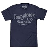 Tee Luv Men's Distressed Ford Signature Shirt, Navy Heather, S
