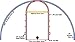 HIGH SCHOOL REGULATION - 39’ 6” wide at baseline and 21’ from the backboard to the top of the key.