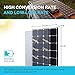 - [Durable] Guaranteed positive output tolerance (0-3%); withstands high winds (2400Pa) and snow loads (5400Pa). Corrosion-resistant aluminum frame for extended outdoor use, allowing the panels to last for decades. Anti-reflective, high transparency, low iron tempered glass with enhanced stiffness and impact resistance. IP65 rated junction box provides complete protection against environmental particles and low-pressure water jets.
