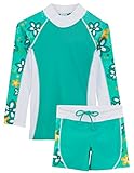 Tuga Girls Tropical Breeze 3 PC Swim Set (UPF 50+), Carnation, 8/10 yrs