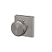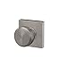 The Schlage bowery knob with collins trim hall and closet lock in Satin Nickel is perfect for use on hall and closet doors where locking is not needed. The bowery knob's clean lines and minimalist design give it a futuristic look that is as modern as it is stylish, while the collins trim's strong lines and square shape embody refined elegance - especially when wrapped in our versatile Satin Nickel finish. Plus, it's been designed and tested with strength and durability in mind.