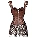 KIWI RATA Women's Punk Rock Faux Leather Buckle-up Corset Bustier Basque with G-String, Brown, XX-Large