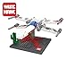 - Star Wars Starfighter X-Wing Toy Model Set includes 2 packages of blocks (478 pieces), a mini display platform, instruction pamphlet (assembly required), a small box (4 x 4 x 4 inches), and a tiny tube of adhesive model glue.