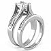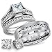 <p> <b>Women's Bridal Wedding Rings Sets</b> </p> <p> This classic ring set is made of Non-Tarnishing Stainless Steel. It will not fade, change color, or leave stains on your finger. The high graded Cubic Zirconia will never lose their brilliance or color. The center-set square princess cut CZ stone is about 1 carat. This attractively designed of this novelty bridal set rings has the traditional engagement ring and wedding ring, if one chooses to do so the rings can be worn individually. </p> <br> <p> <b>Men's Solid Titanium CZ Matching Band</b> </p> <p> Men's solid titanium 8 mm wide comfort fit wedding band. This men's wedding band features 9 AAA grade 2.5mm sparkly cubic zirconia. Interior of band is slightly rounded to provide a comfortable fit for daily wear. It is made of non-tarnish, high quality Titanium. Titanium jewelry is durable, lightweight and hypo-allergenic (nickel-free). </p> <br> <p> <b>30-Day Money Back Guarantee</b> </p> <p> If you are not satisfied with an item that you have purchased, you may return the item within 30 days from the order date for a full refund of the purchase price, minus the shipping fee. </p> <br>
