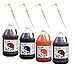 Great tasting and economical snow cone syrup in a four flavor variety pack. Case includes Blue Raspberry, Cherry, Orange, Watermelon snow cone syrup & four gallon pumps. Save money over purchasing separate. Ready-to-use. Just add 2oz per 6oz cup of shaved ice.