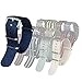 From the Original BluShark Collection, our nylon straps provide the ultimate combination of comfort and durability. A favorite of watch enthusiasts everywhere, BluShark straps are the premium strap brand known for being the pinnacle of quality. Some of our most popular straps include the versatile solid black, gray, army green, tan/khaki, and cream straps. Our black and grey James Bond strap is also very popular and the Vintage Bond strap adorns the black, green, and red stripe pattern worn by Sean Connery in Goldfinger. BluShark straps are backed by a lifetime guarantee that protects against manufacturer's defect. We carry straps in 18mm, 20mm, 22mm, and 24mm. We're also one of the few brands to offer a premium buckle option for customers with discerning taste. Our innovative alphaShark line is one of the first luxury nylon watch straps on the market and provides the quality you expect from the giant manufacturers at an affordable price. BluShark, a better breed of nylon watch strap. BluShark watch bands are compatible with the majority of watches produced by major watch brands including the following: Seiko, Citizen, Timex, Omega, Rolex, Fossil, Casio, Tag Heuer, Tissot, Hamilton, Doxa, Squale, Steinhart, Sinn, Fortis, and many others. Please check the lug width of your watch for an accurate fit.