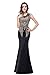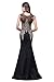 MisShow Women's Rhinestone Long Lace Formal Mermaid Evening Prom Dresses Black