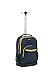 Rolling backpack with skate wheels and retractable t-handle. Measures 13 inch l x10 inch w x 19 inch h. Features include 2 zippered compartment pockets on the front of the bag with the smaller having a built in organizer. Zippered main compartment has a padded compartment for a laptop and two mesh side pockets. Fabric handle at the top and sturdy retractable t-handle with an ergonomic grip is built to last. Bag made of durable polyester with metal telescoping handle and heavy duty plastic base on bottom to keep the bag standing and protects the fabric from dirt and wear. Padded shoulder pads allows the bag to be carried comfortably on the back as an option.