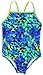 Speedo Big Girls' Youth Solid Splice Cross-Back One-Piece Swimsuit (Blue Geo, 5)