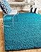 Unique Loom Solid Shag Collection Deep Aqua Blue 8 ft Square Area Rug (8' 2" x 8' 2")