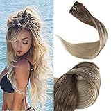 Full Shine 14" 100gram 10 Pcs Remy Balayage Clip in Hair Extensions Dark Brown Color #8 Fading to Color #60 Platinum Blonde Balayage Human Hair Extensions Clip in Real Hair