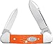 The Case Orange Baby Butterbean is a part of the Orange Sparxx Family. Bold, brave and exuberant, this vibrant orange shade brings an adventurous spirit to the season. The Baby Butterbean is a traditional, functional, and classic knife from Case, also referred to as the Baby Canoe. This durable folding knife features two blades on opposing ends and an orange jigged synthetic handle. The pen blade is great for light work and good for sharpening. The spear blade is used as a heavy-duty utility tool and great for piercing. Constructed with Case Tru-Sharp Stainless Steel, this knife has special high-carbon steel that helps the blades holds an edge longer than conventional steel. It also offers extraordinary blade strength and corrosion resistance. This pocket knife is suitable for everyday demands, hunting, or the outdoors. The slim design is perfect for a pocket or purse. Comes conveniently packaged in a box. Made in Bradford, PA, USA from domestic and imported materials.