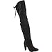 CAPE ROBBIN Dd17 Women's Side Zip Block Heel Stretchy Snug Fit Thigh High Boots,Black,6.5