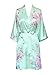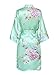 Old Shanghai Women's Kimono Short Robe - Chrysanthemum & Crane - Aqua O/S