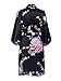 Women's Satin Kimono Robe Short - Floral - Chrysanthemum & Crane - Black