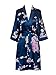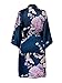 Old Shanghai Women's Kimono Short Robe - Chrysanthemum & Crane - Navy