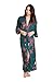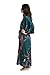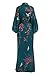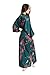 Old Shanghai Women's Kimono Robe Long - Watercolor Floral, Cherry Blossom & Crane- Teal, One Size.