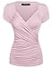 Zeagoo Women's Cross-front V Neck Pullover T-Shirt Ruched Blouse,Small, Pink, Pink, Small