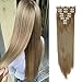 8Pcs 18 Clips 17-26 Inch Curly Straight Full Head Clip in on Hair Extensions Women Lady Hairpiece, standar Weft-ash Blonde, 26 Inch-Straight