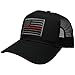 USA American Flag Patch Snapback Trucker Mesh Cap - Black (One Size, Thin Red Line)