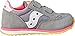 Now you and your baby can have matching Saucony Originals! The Saucony Jazz hook-and-loop offers extreme comfort and that effortlessly cool look that never goes out of style. A rubber outsole with triangular lugs provides traction and flexibility for a comfortable, smooth ride. Fun colors and easy closures have made the baby Jazz the ultimate first shoe.
