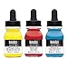 Liquitex professional acrylic ink is made with super-fine artist-grade pigments captured in cutting-edge acrylic emulsion. Liquitex inks are extremely fluid, water resistant, permanent and so lightfast they'll go down in history. Ideal for airbrushing, watercolor effects and screen-printing. Set includes Cerulean blue hue, Naphthol crimson, and cadmium yellow light hue (3 x 30ml).