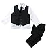 This complete suit is tailored trimmer than our popular classic fit tuxedo. The suit has narrower lapel and slightly tapered waist, narrower through body and longer jacket length. The front upper pocket is sewn shut at delivery but can be opened to accomodate a hankerchief. Vest has adjustable strap at back. For size 2T-4T, pants has flat front and elastic back. For size 5 to 20, pants has button zipper front and elastic sides.