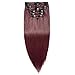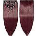 s-noilite Clip in Human Hair Extensions 100% Real Remy Thick True Double Weft Full Head 8 Pieces 18 clips Straight silky (20 inch - 150g,Wine Red (#99J))