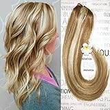 s-noilite Clip in Human Hair Extensions 100% Real Remy Thick True Double Weft Full Head 8 Pieces 18 clips Straight silky (22 inch - 160g,Ash Blonde/Bleach Blonde (#18/613))