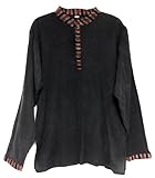 Great looking men's handloomed cotton tunic with Mandarin-style collar and 3 top loop button closures, slits at bottom sides. SM/Medium sleeve 23"long, across front chest 21", Large/XL sleeve 26" long, across front chest 24", XXL/XXXL sleeve 27" long, across front chest 27 044". These look really cool on any guy.