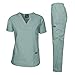Dagacci Medical Uniform Scrub Unisex Set, Woman and Man Classic Fit V-Neck Top, Three Side Cargo Pockets Pants
