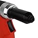 Product Description<br>Includes the following nosepieces: 3/16"(4.8mm), 5/32"(4mm), 1/8"(3.2mm), 3/32"(2.4mm).<br>Can use for Stainless steel nail, iron nail and aluminium nail<br>Quick release air valve permits cylinder to return quickly for high speed assembly operations: Prevents overloading for long life.<br>Gets into hard-to-reach areas.Provides quick, quiet and comfortable operation preventing user fatigue.<br>Performs well at any angle.<br><br>Specifications:<br>Air Inlet: 1/4" NPT<br>Net Weight: 2.9lb (1.33kg)<br>When work pressure at 6 kgf/cm (85.34PSI),Rated tension is 890 kgf (1962.11 lbf)<br> When work pressure at 8 kgf/cm (113.79 PSI),Rated tension is 1180 kgf (2601.45 lbf)<br>Air Pressure: 90-120psi<br>Air Riveter - 3/32", 1/8", 5/32", 3/16" Capacity <br>Product travel: 19mm<br>Hydraulic oil grade is 46<br><br>Features:<br>Automatic suction nails, more convenient, includes the rivet catcher in the back, patented design, rotating cup, easy pour abandoned nails<br>360 degree turnable 1/4-inch NPT air inlet, avoid bending pipe <br>Short trigger,grip more comfortable, work more efficiently<br>Air inlet increase control switch, no need to disconnect the intake pipe or shut down the air compressor, more convenient and environmentally friendly<br>No vibration technology, the operation feel comfortable,extended service life.<br>silencer design, low noise during operation and comply with environmental requirements.<br>