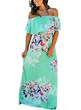 Flowers Off Shoulder Ruffle Party Homecoming Maxi Dress, X-Large, Turquoise