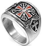 KONOV Classic Vintage Cross Mens Ring, Stainless Steel Band, Size 9