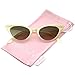 Totally flirty and cute, these cat eye sunglasses feature an exaggerated cat eye silhouette with double pointed tips and a color fade design. Oval neutral-hued lenses give this style it's retro-inspired feel, while sparkling rhinestones and gold-toned embellishments add to its charming appeal. Glamorous and chic, these playful sunglasses are a great addition to our novelty collection. Made with a plastic based frame, reinforced metal hinges, and polycarbonate UV400 lenses.