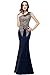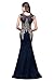 MisShow Women's Rhinestone Long Lace Mermaid Evening Dresses,Navy,Size 14