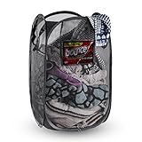 SimpleHouseware Pop-Up Laundry Basket Hamper With Side Pocket, Black. You can not only do your weekly laundry but also for different storage/organization purpose. Utilize it as a outdoor carrying bag for sports, grocery bag or indoor storage basket in your bathroom, pantry room. And it's foldable to very small size (8'' x 7.5'') for easy carrying and it's portable. The breathable mesh construction keeps air circulation, sturdy handles and solid bottom make it more durable.