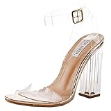 Cape Robbin Benny-1 Open Toe Block Chunky Clear Perspex Heel Ankle Boot Bootie Shoe Black (10)