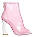 Cape Robbin Benny-1 Open Toe Block Chunky Clear Perspex Heel Ankle Boot Bootie Shoe,Pink,6.5