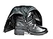 - Moto-inspired riding boot with buckled straps at ankle and curved antiqued zipper, and instep zipper for easy on/off