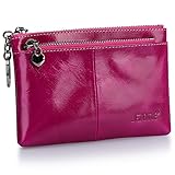 Women's Genuine Leather Coin Purse Mini Pouch Change Wallet with Key Ring,rose