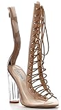 Cape Robbin BENNY-1 Womens Perspex Peep Toe Ankle Boots (6.5, Black)