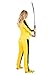 DETAILED DESIGN: Dress to kill movie fans with the meticulous attention to detail in this costume, featuring a yellow jacket with matching pants, mirroring the outfit from the film. This womens Kill Bill costume boasts a zip-up front, buttons along the neck and waist, and black stretch fabric on each sleeve for a snug fit, enhancing its authenticity and aesthetic appeal.