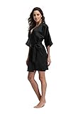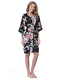 Luvrobes Women's Satin Kimono Robe, Peacock Design, Short (L, Black)