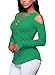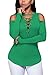 FARYSAYS Women's Sexy Cold Shoulder Blouse Lace-Up Ribbed Tops Green XXL