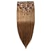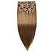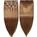 s-noilite Clip in Human Hair Extensions 100% Real Remy Thick True Double Weft Full Head 8 Pieces 18 clips Straight silky (14 inch - 120g,Light Brown (#6))