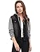 Allegra K Women's Layered Drawstring Hood Denim Jacket w Pockets M Black