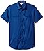 Calvin Klein Men's Short Sleeve Stretch Poplin Military Button Down Shirt, Serene Blue, LARGE